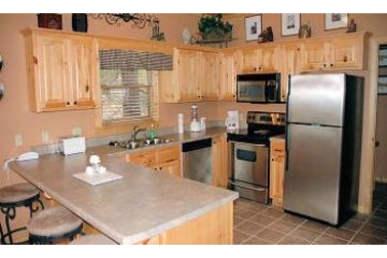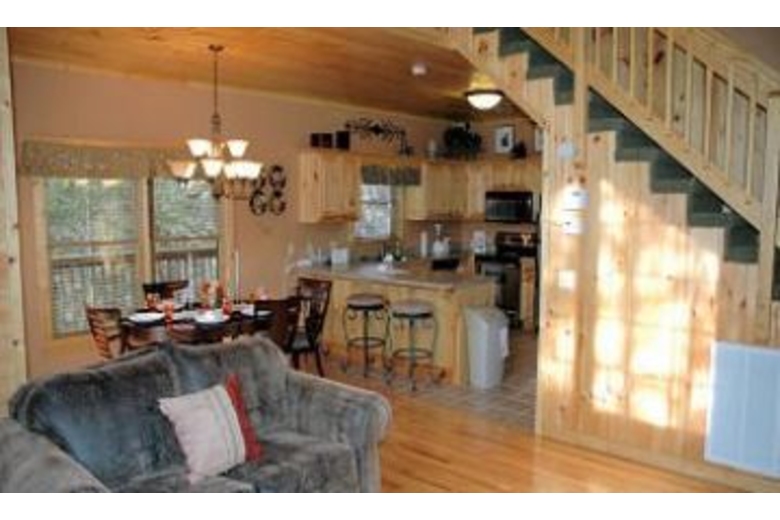 This cabin features 2 bedrooms and 2 bathrooms. There are 2 king beds and one queen sleeper sofa. It has a large kitchen, dining, and living area.Surrounding Description