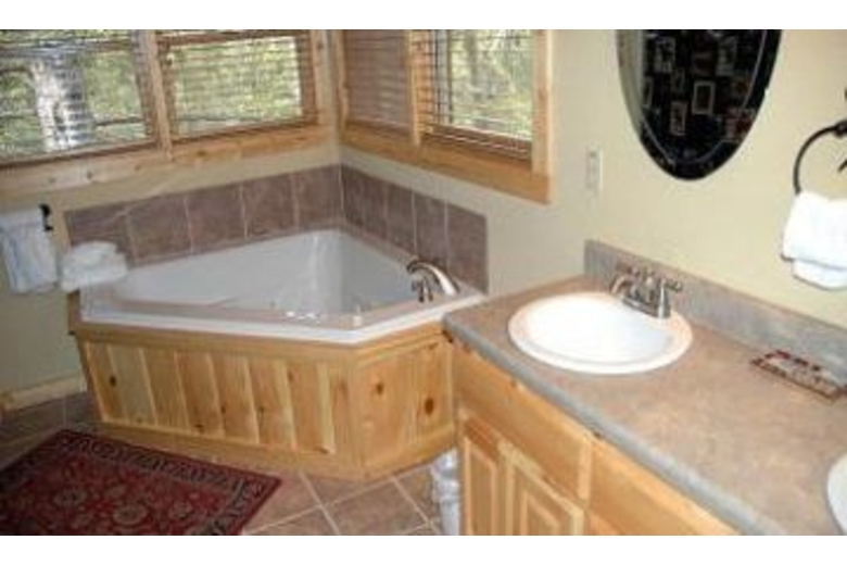 Rustic Elegance is a beautiful log home nestled in the mountains in the arts and crafts community. It boasts a covered hot tub, jacuzzi in the master bath and a pool table.