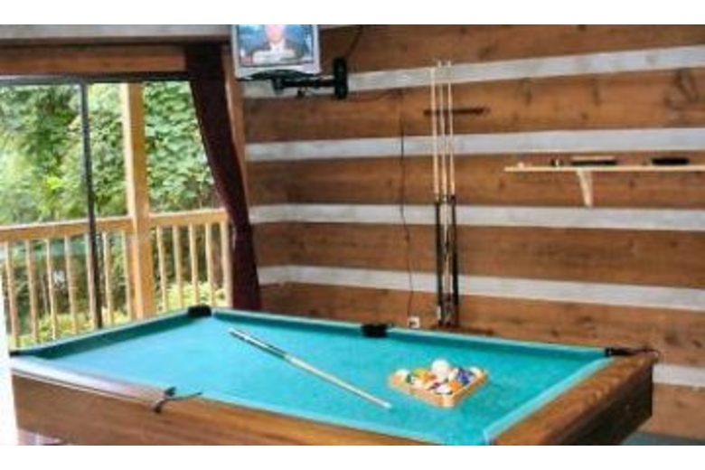 This cabin features 5 bedrooms with queen beds and 5 bathrooms. It has a large kitchen, dining, and family room. It also features a large deck with a gazibo.Surrounding Description