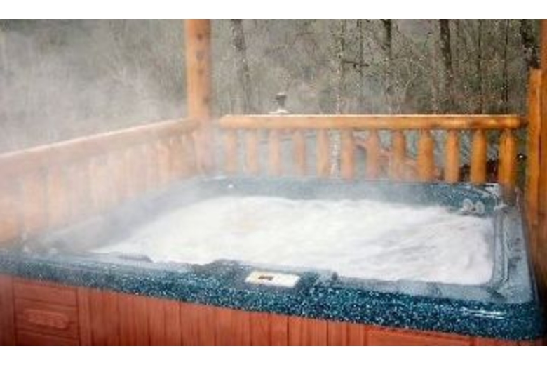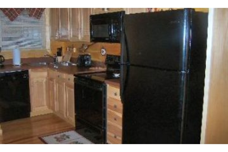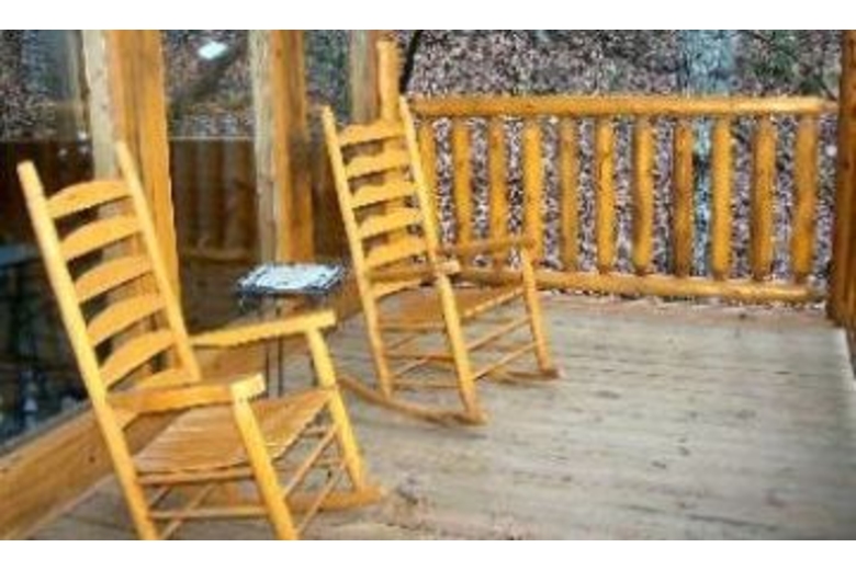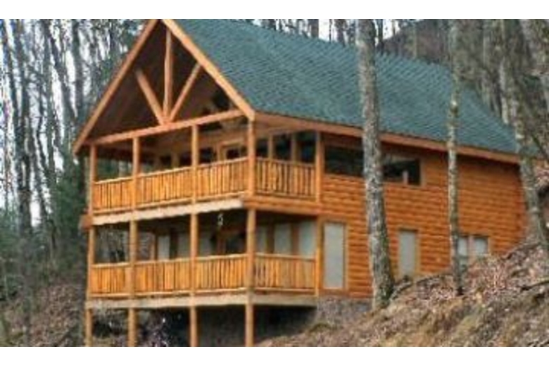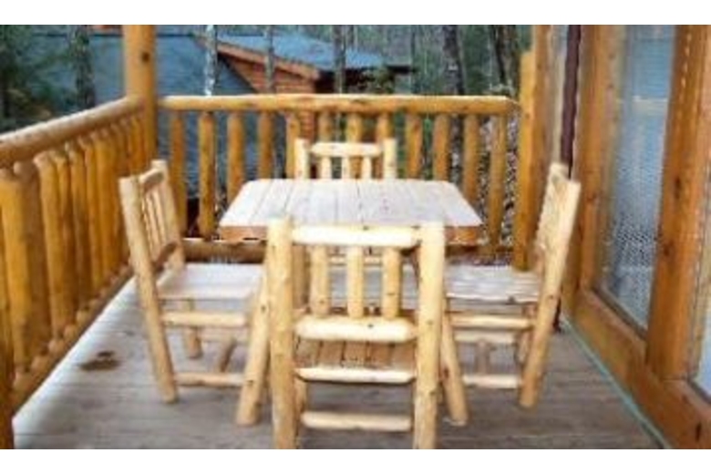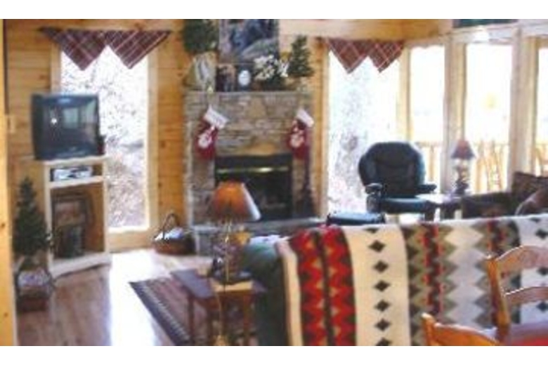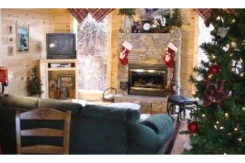 Log cabin with 2 levels of decking. In the loft you have a king bed and 2 futons, main level you have queen log bed with electric fireplace. There are winter views and no one is on either side of you at black bear ridge resort.Surrounding Description