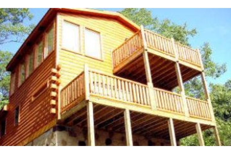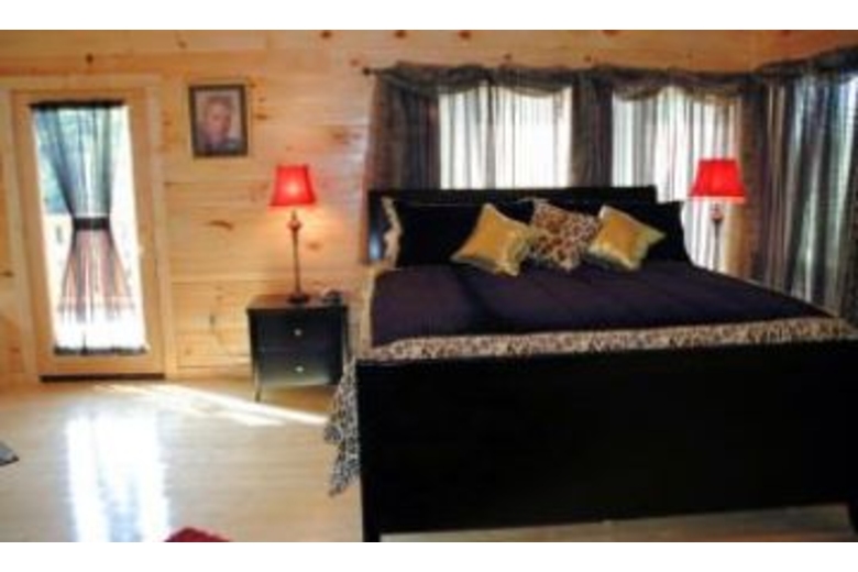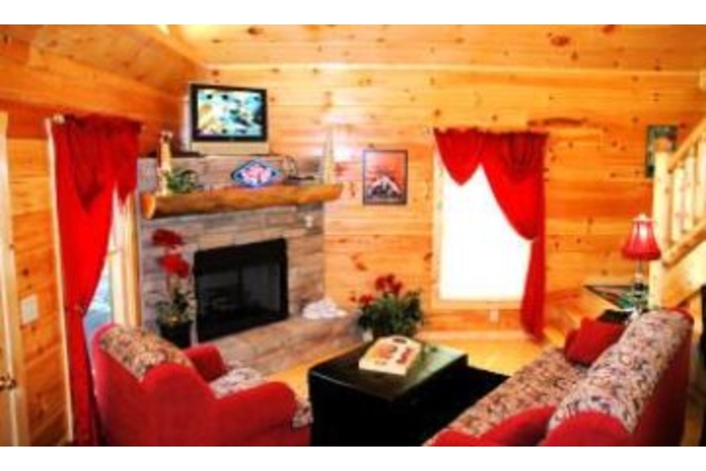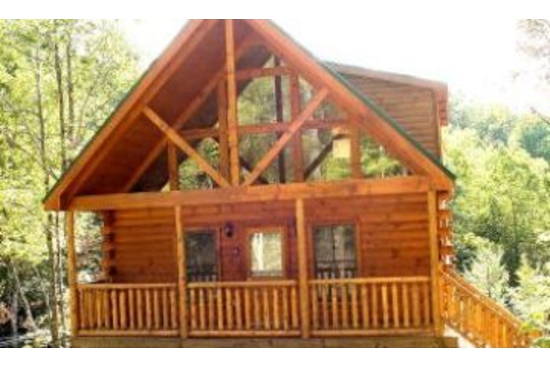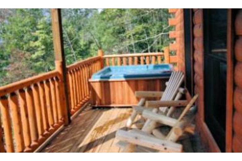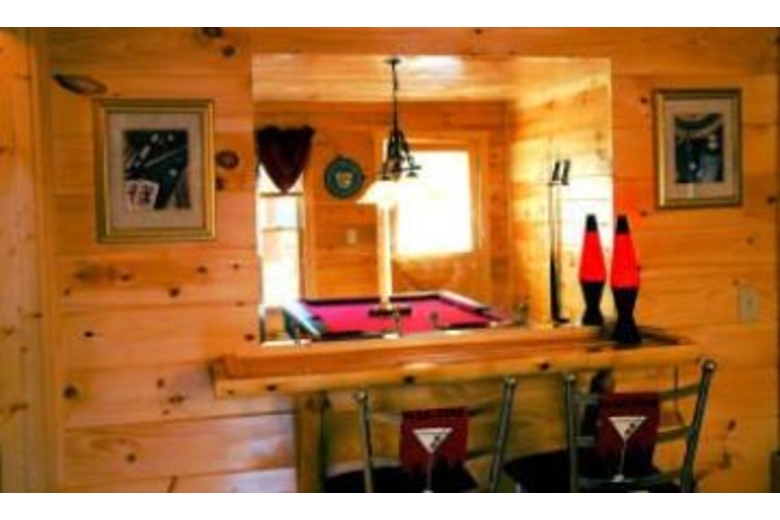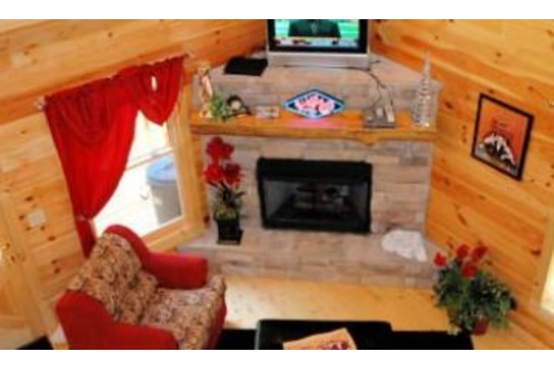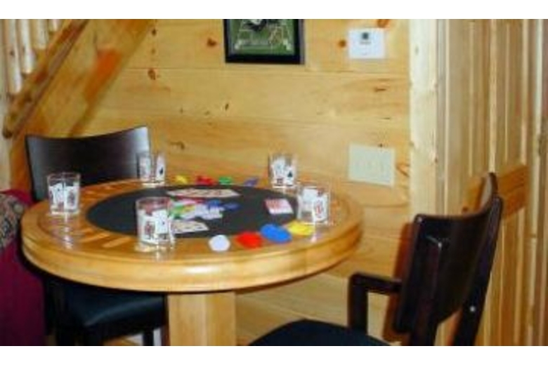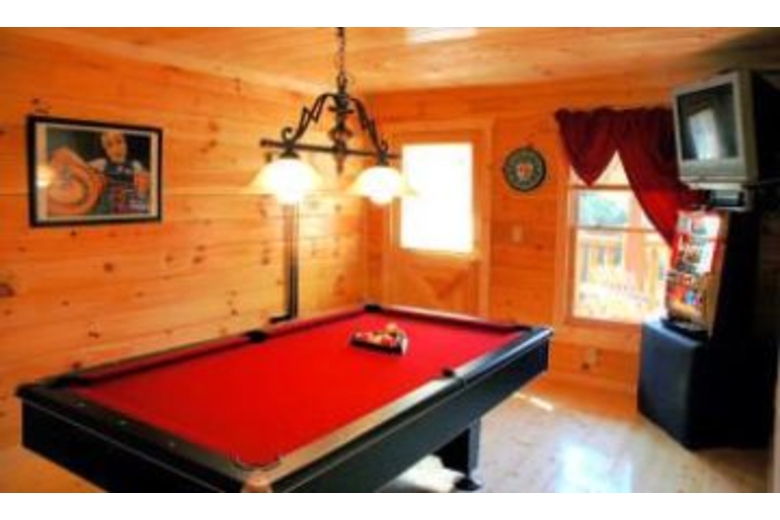 Private log cabin w/ big screen tv, jacuzzi, balcony off top level master bedroom. Ridge-top views & privacy make this "vegas-style" cabin a top choice! Mock slot machine, pool table, hot tub , & poker table are also a plus!Surrounding Description