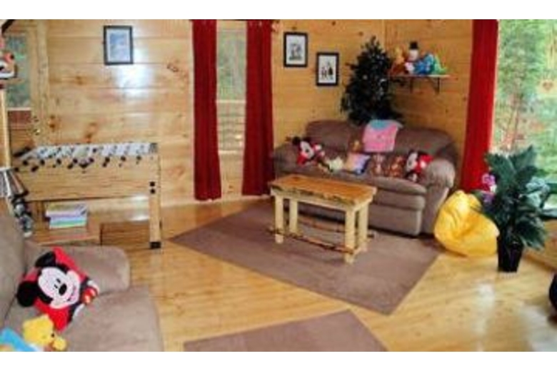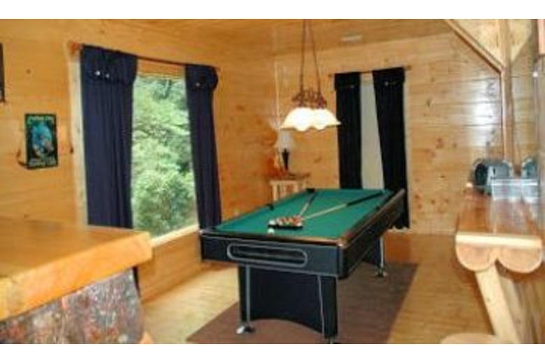 Enjoy the 3 levels, 2 bedrooms, 2 bathrooms, main level living area, sleeper sofa. The deck is private with hot tub, upstairs bedroom with queen bed, bathroom, jaccuzi tub, lower level game room, sleeper sofa, pool table, and foosball. The cabin is in a wooded area very private and 4 x 4 is required to get to this cabin.Surrounding Description