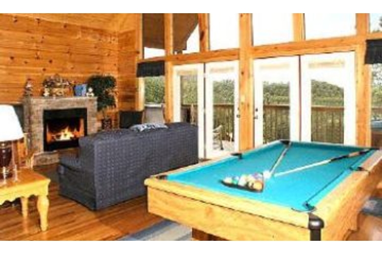 2 bedroom, 2 bath, cabin has indoor pool access, big screen tv, gas fireplace, pool table, king bedroom, full bathroom, upstairs open loft with king bed & red heart shape jaccuzi tub, bath has shower, 3 tv's hot tub on deck, 1air mattress and 1 sleeper sofa. Wireless internet access in resort lobby...Heated, covered pool within walking distance. ...1.5mi. behind Dollywood.Surrounding Description