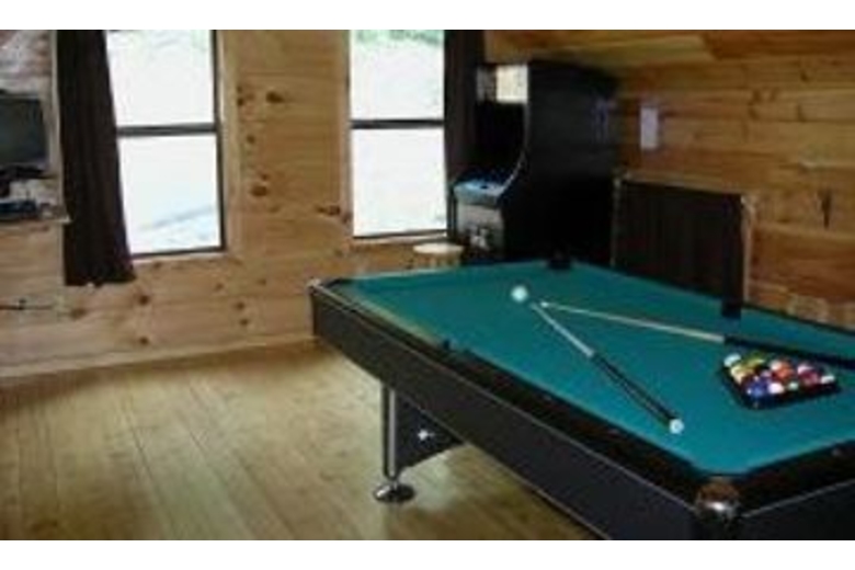 In this cabin you will find two bedrooms, two baths, fully equipped kitchen, washer, dryer, gas grill, Jacuzzi, satellite TV, three DVD players, game loft with pool table, 48 game arcade, poker table, board games, wet bar and outdoor hot tub.Surrounding Description