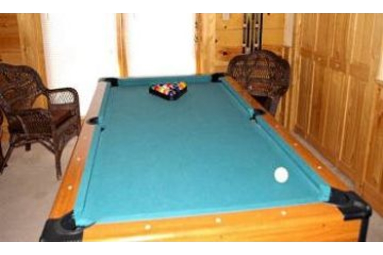 In this cabin you will find two bedrooms, three baths, five TVs, DVD, gas fireplace, gas grill, cable TV, hot tub, pool table, pool, washer and dryer.Surrounding Description