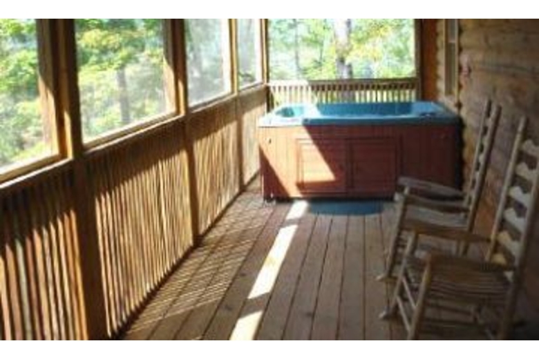 In this cabin you will find two bedrooms, two baths, three TVs, DVD, two gas fireplaces, gas grill, satellite TV, Jacuzzi, hot tub, washer and dryer.Surrounding Description