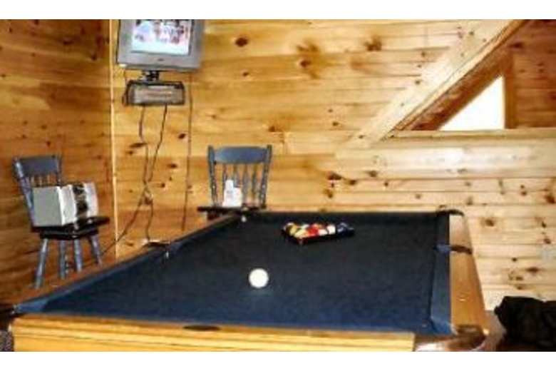 In this cabin you will find two bedrooms, two baths, four TVs, DVD, VCR, gas fireplace, gas grill, cable TV, Jacuzzi, hot tub, pool table, washer and dryer.Surrounding Description