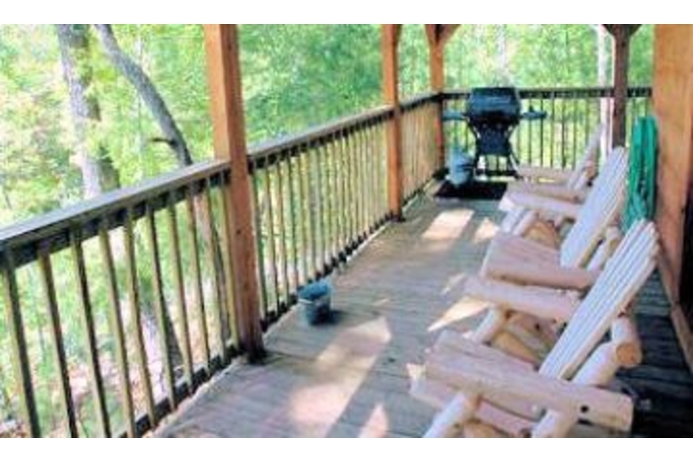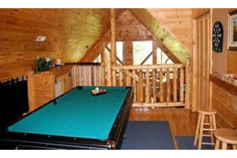 In this cabin you will find two bedrooms, three baths, three TVs, two DVDs, gas fireplaces, gas grill, three satellite TVs, Jacuzzi, hot tub, pool table, darts, telescope, horseshoe pit, washer and dryer.Surrounding Description