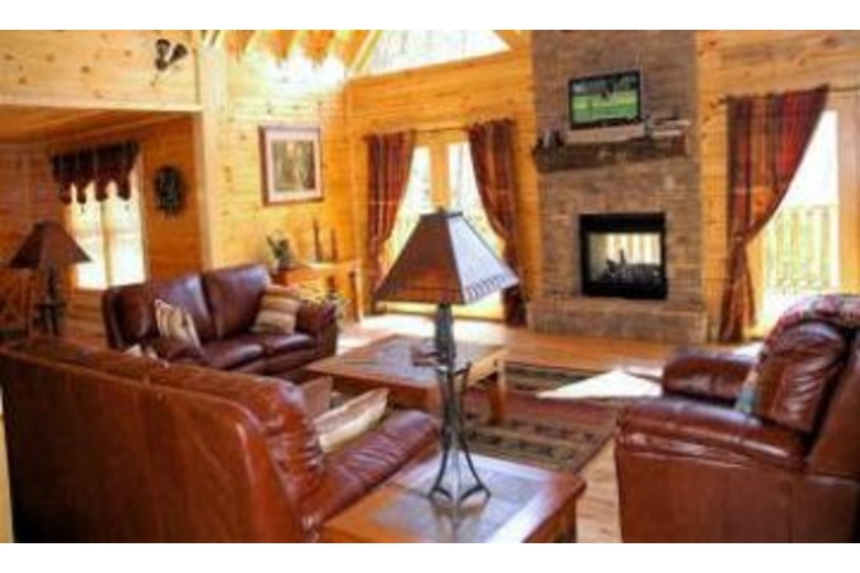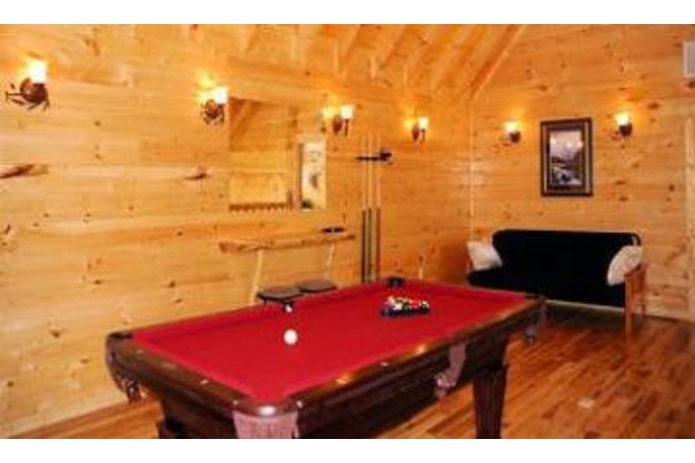 In this cabin you will find two bedrooms, three baths, TV, DVD, gas grill, satellite TV, fireplace, three Jacuzzis, hot tub, pool table, washer and dryer.Surrounding Description