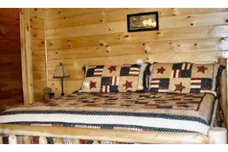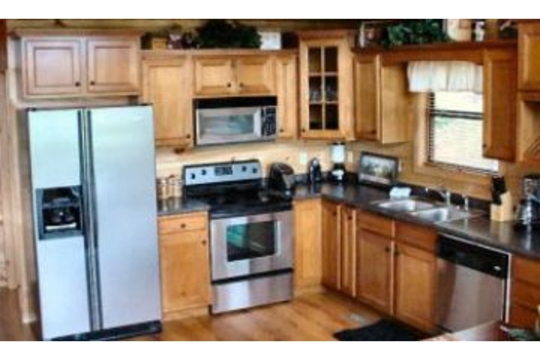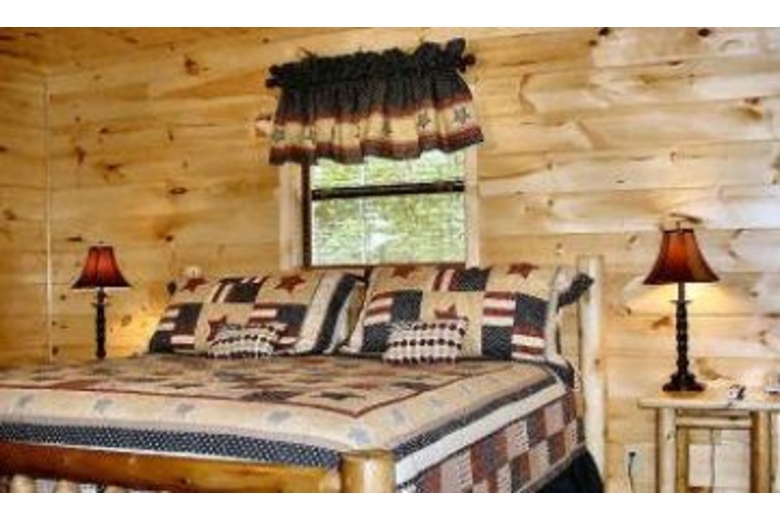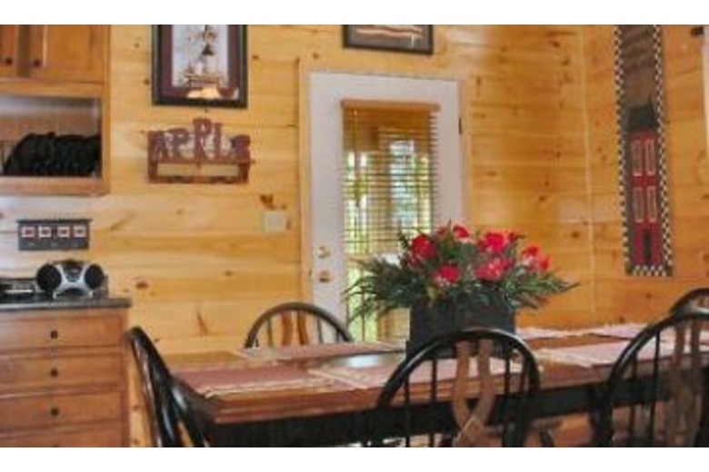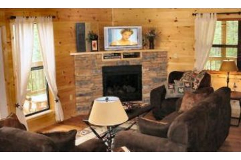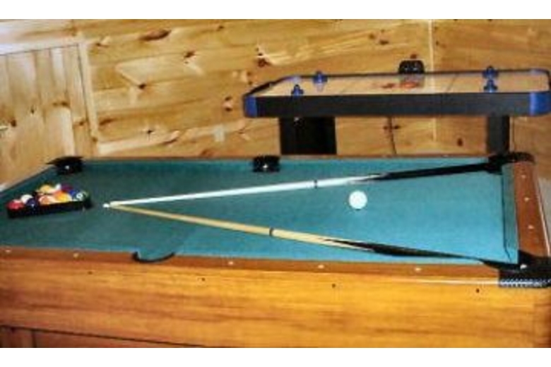 In this cabin you will find two bedrooms, three and a half baths, four TVs, four DVDs, two fireplaces, gas grill, satellite TV, two Jacuzzis, hot tub, pool table, air hockey, playstation 2, washer and dryer.Surrounding Description