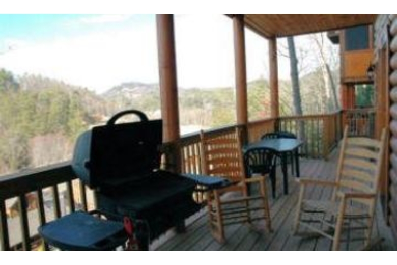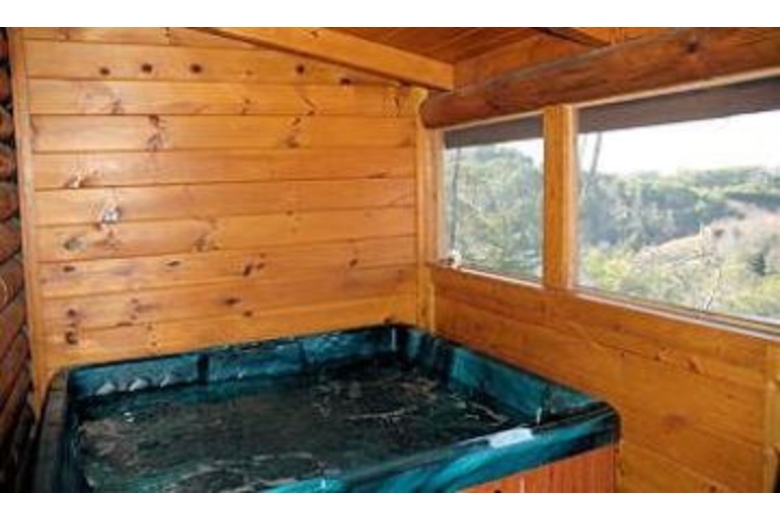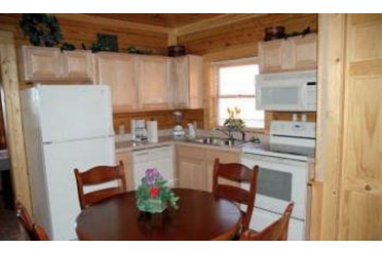 This two bedroom, three bath cabin has a fully equipped kitchen with microwave for quick meals or snacks, satellite TV, DVD, gas fireplace, washer, dryer, air hockey, gas grill plus hot tub, Jacuzzi and pool access.Surrounding Description