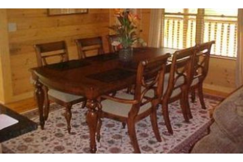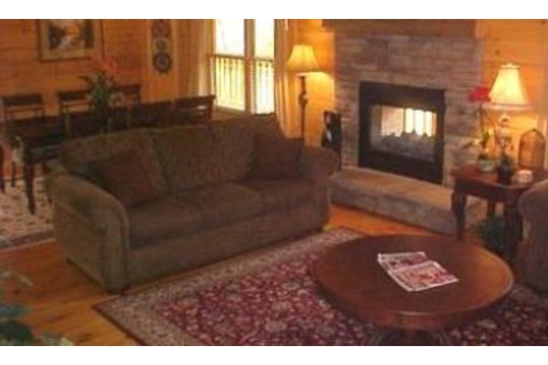In this cabin you will find three bedrooms, three baths, TV, DVD, VCR, double sided fireplace, gas grill, satellite TV, hot tub, Sega with games, washer, dryer, ceiling fans, wrap around deck and by the river.Surrounding Description