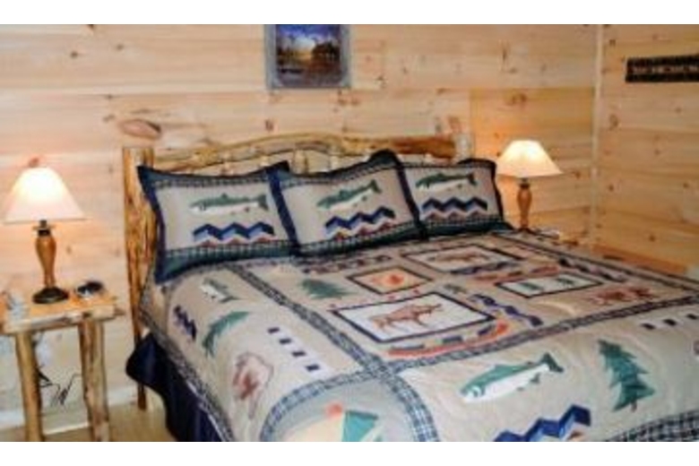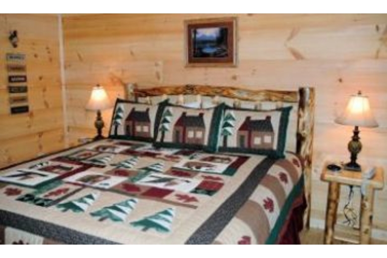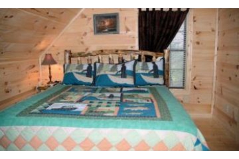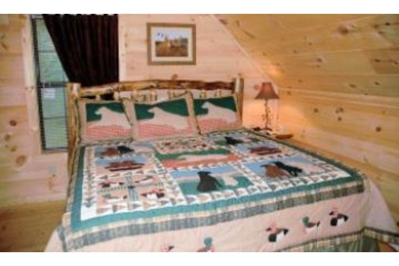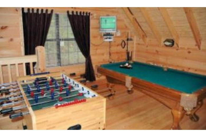 This cabin features four bedrooms, four baths, four king beds, double sofa sleeper, Jacuzzi, four TVs, pool table, foosball, DVD, VCR, satellite TV, gas fireplace, hot tub, gas grill, washer and dryer.Surrounding Description