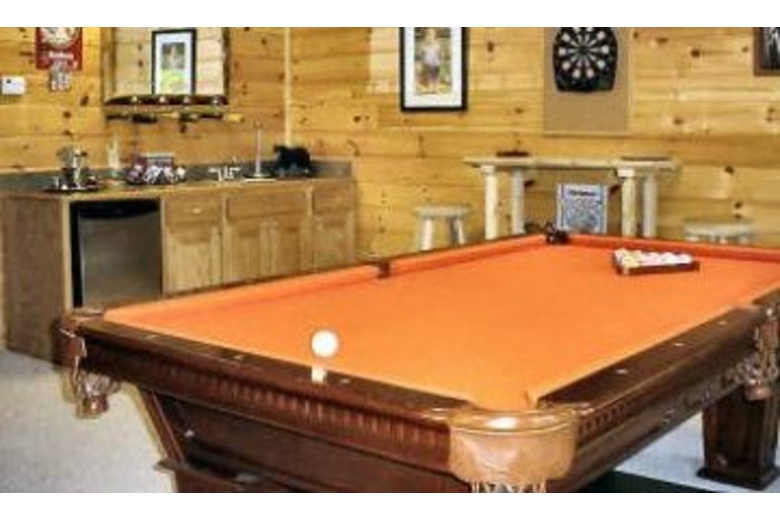 This cabin features three bedrooms, three baths, three queen beds, two double sofa sleepers, five TVs, satellite TV, three VCR, DVD, washer/dryer, gas fireplace, hot tub, Jacuzzi, pool table, swimming pool, picnic table and gas grill.Surrounding Description