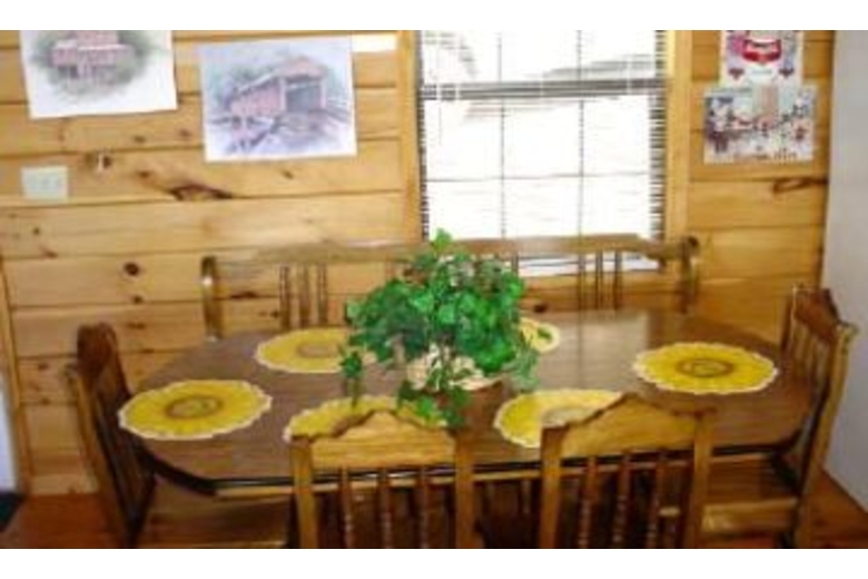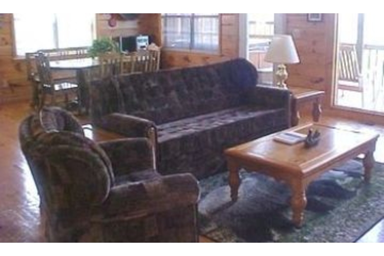 This cabin has three bedrooms, two and a half baths, three king beds, double sleeper sofa, TV, satellite TV, VCR, DVD, pool table, gas fireplace, washer/dryer, swimming pool, hot tub and Jacuzzi.Surrounding Description