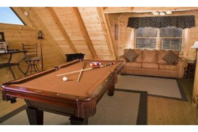 This luxurious cabin is the perfect setting for Honeymooners, Anniversary celebrations, or any couple's getaway. It features two levels and sleeping accommodations for six. There is a king bed in the master bedroom, as well as a bedside jacuzzi. The great room offers a lovely stone fireplace, and there is a pool table in the loft.Surrounding Description
