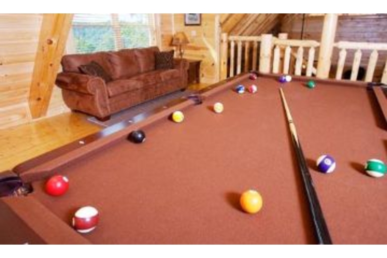 This luxurious cabin is the perfect setting for Honeymooners, Anniversary celebrations, or any couple's getaway. It has a great floorplan spread out over two levels. The master bedroom has a king bed, fireplace, and a bedside jacuzzi. There is a loft area with a queen sleeper sofa and a pool table.Surrounding Description