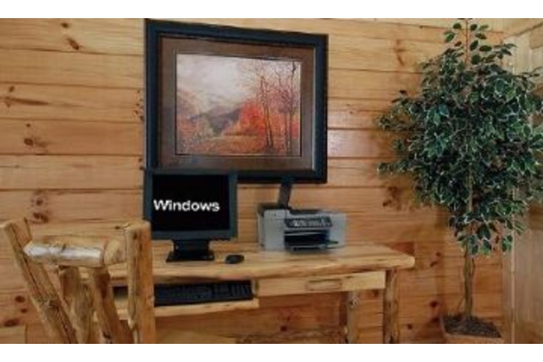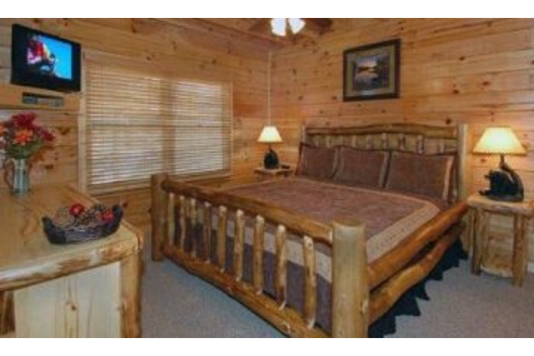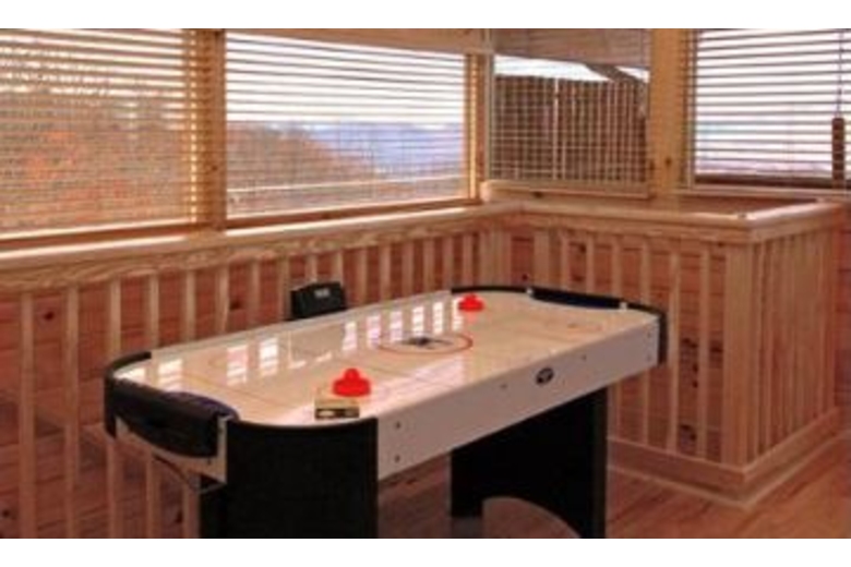This cabin is beautifully furnished throughout and offers a fully equipped kitchen, spacious living area, dining area, three king beds, four baths with jacuzzi tub in the master, washer/dryer and a loft den. Entertainment abounds here and includes a pool table, air hockey, playstation 2 console, big screen TV, multiple VCR/DVD combos and TV's, classic video arcade system, desktop computer, business center and Wi-Fi and high speed internet access. Outdoors offers the sights and sounds of nature at its best from the comfort of the deck swing or rockers or the warmth of the hot tub. Catch a breathtaking sunset or glimpse at the big open star-studded sky at night.Surrounding Description