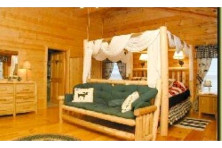 This cabin is perfect for a romantic couple or small family. It features one bedroom with a king canopy bed and a sectional sofa sleeper in the living area. A jacuzzi tub for two awaits after a long hike, enjoy a game of pool, or you can just cozy up to one of the two wood burning fireplaces. The kitchen is fully equipped to prepare any meal and connects to a lovely dining area. Other convenient features include: Internet access, washer/dryer, charcoal grill, and a relaxing hammock on the deck.Surrounding Description