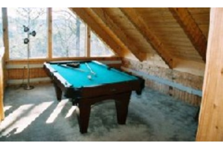 A Moment in Time log cabin features a warm and inviting Tennessee Log Exterior with a full length covered porch where you can experience the beauty of The Great Smokey Mountains while you rock away the hours. The cabin has a full kitchen for preparing those romantic candle light dinners or economical family meals. Snuggle in front of the stack stone wood burning fireplace on those cold winter evenings. Retreat to your master bedroom with king size bed, TV and separate full bath. Upstairs there is an open loft queen bedroom with TV, separate full bath plus a game area with pool table. Relax on the covered porch with a bubbly hot tub or enjoy the cool mountain air as you BBQ on your charcoal grill.Surrounding Description