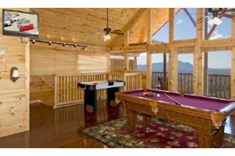 Experience a mountain vacation with all the necessities this three bed four bath cabin has to offer. It features a full deluxe kitchen, washer/dryer, three king beds, one queen sleeper, jacuzzi tub, two fireplaces and comfortable furnishings throughout.Entertainment found throughout with a big screen TV, multiple TV's and VCR/DVD combo's, pool table, air hockey, classic arcade system, playstation 2 console, desktop computer and business center with Wi-Fi and high speed internet access.Step outside to the tranquil sounds of nature and soak in the hot tub or relax in a deck rocker. Enjoy fabulous views both day and night.Surrounding Description