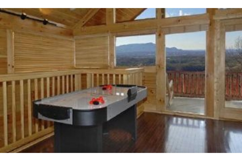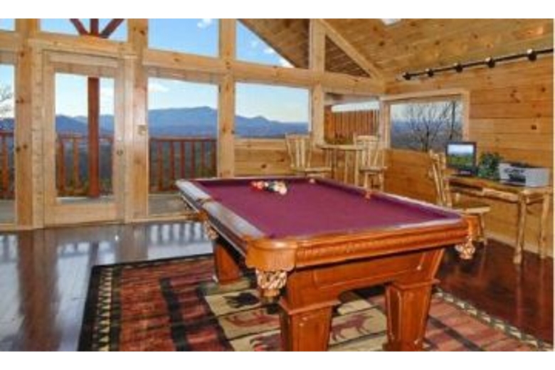 Life in this amazing three bed four bath cabin is quite the vacation! Fully loaded with entertainment for all ages, it has a big screen TV, playstation 2 console, desktop computer, business center and high speed internet access, pool table, air hockey, multiple TV's, DVD/VCR combo's and a classic video arcade system. Beautifully decorated through out, it featuresa full kitchen, dining area, washer/dryer, jacuzzi tub, two fireplaces, three king bedrooms, and two queen sleeper sofa's.Stepping outdoors to the deck provides nature's entertainment at it's best. Enjoy it from the warmth of the hot tub or sitting in a deck rocker looking out at the scenic views and breathing in the mountain fresh air.Surrounding Description