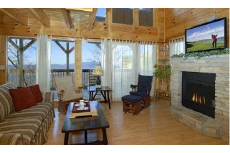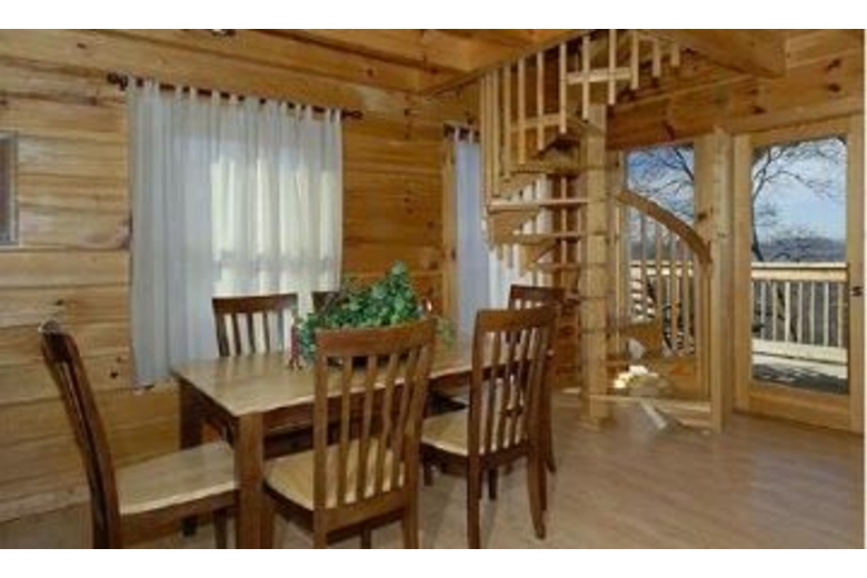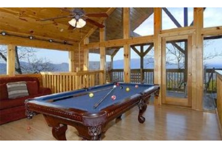 The two-story cabin is beautifully decorated throughout and offers all the comforts of home and more. On the first floor, it features a fully equiped kitchen, washer/dryer, dining set, a spacious living room with 42" LCD TV/DVD/VCR with surround sound system, HBO and a cozy gas fireplace and a master bedroom with a king bed, 34" TV/DVD/VCR and a private jetted for two. Retreat up the spiral staircase, to the loft area that houses a loft bedroom with queen bed, TV/DVD/VCR and private bathroom, and game room with a pool table and a twin sleeper sofa. Outside offers two decks to admire the spectacular panoramic views of The Great Smoky Mountains and surrounding area. Enjoy it while soaking in the hot tub, relaxing in a deck rocker or cooking on the charcoal grill.Surrounding Description