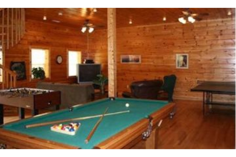 inside this well appointed four bed four bath cabin, guests will enjoy the plush furnishings and all the amenities needed for a stress-free vacation. It features a fully equiped kitchen, dining area, spacious living room with fireplace, washer/dryer, multiple TV's, DVD and VCR players and fully loaded game room featuring foosball, ping pong, pool table and sitting area with a large screen TV. Bedding includes two master suites with king beds, jacuzzi tubs and separate showers, one king bedroom in the loft, two queen beds in the downstairs bedroom and two queen sleeper sofa's. Guests can enjoy access to cable or satallite, high speed and Wi-Fi internet and unlimited domestic long distance calls. Outside take advantage of the gorgeous panoramic views from one of the three decks, sit and soak in the hot tub or relax in a deck rocker. A picnic table and charcoal grill makes dining outdoors a breeze.Surrounding Description