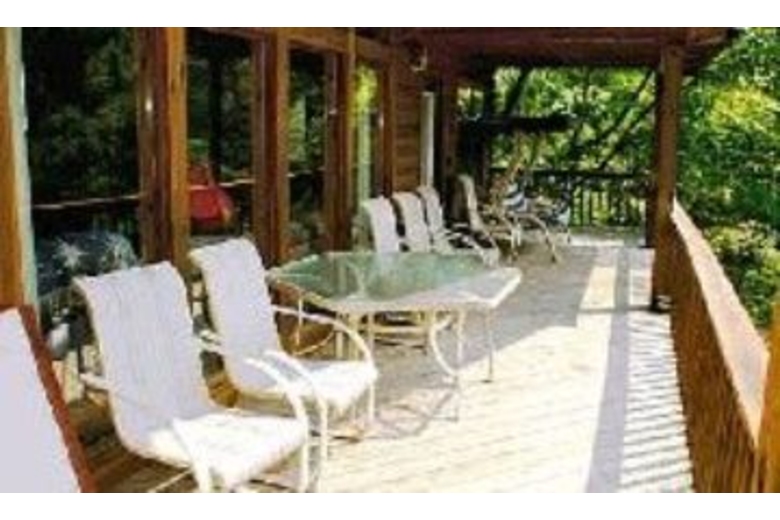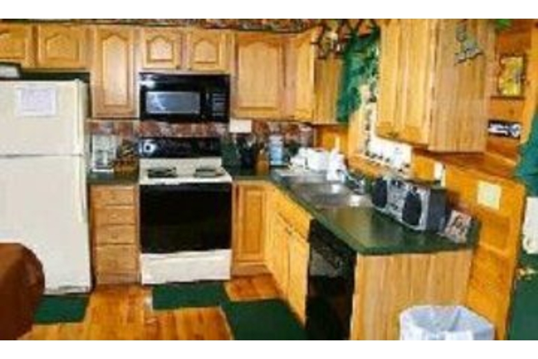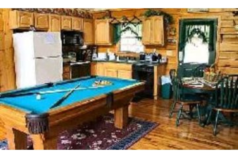 Cabin features two bedrooms and two bathrooms. The master suite complete with jacuzzi whirlpool tub, king bed, full bath with step in shower and a double sided gas fireplace. The second bedroom with another king bed and full bath. Both bedrooms are also equipped with satellite TV. Entry is through the kitchen/dining area where you'll find everything you need to prepare a mouth watering meal. Attached to the kitchen area is the great room where you'll find a full size pool table, cable TV and the other side of the double sided gas fireplace. The large wrap around deck can be accessed from the great room or the master suite. Here you'll find a great porch swing, deck seating, dining table, and a large bubbling hot tub...all with beautiful wooded resort views.Surrounding Description