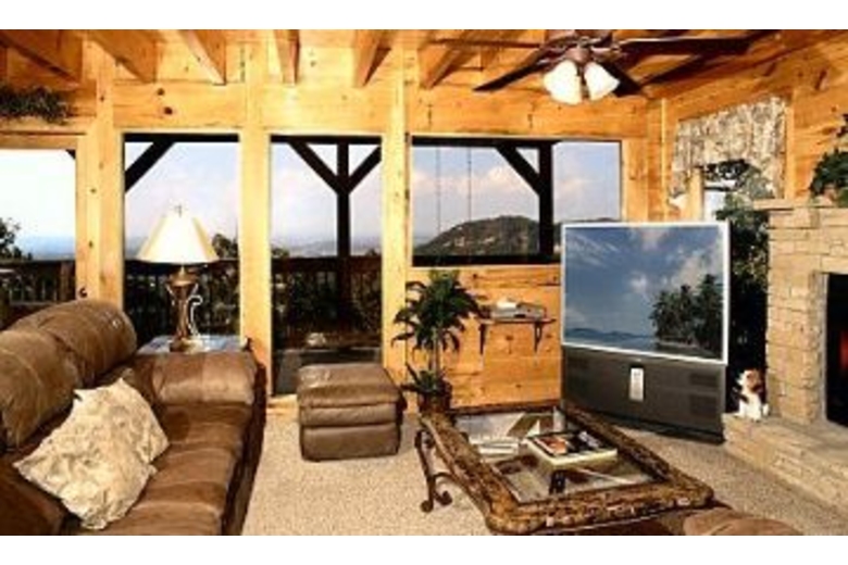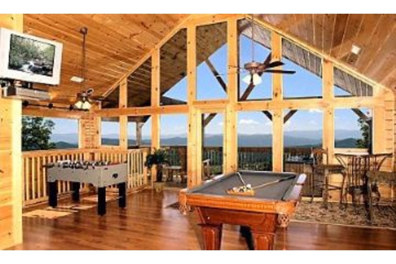 This cabin includes a charcoal grill, a gas fireplace, a full kitchen, and a great view. From the balcony watch Dollywood's train below. With a view you can only imagine, sit on the porch swing and drift away or relax in the hot tub on the top deck. Play a game of pool, foosball, electric darts or just watch your favorite program on one of the 3 TV's. There is always something to do in the afternoon, morning or night.Surrounding Description