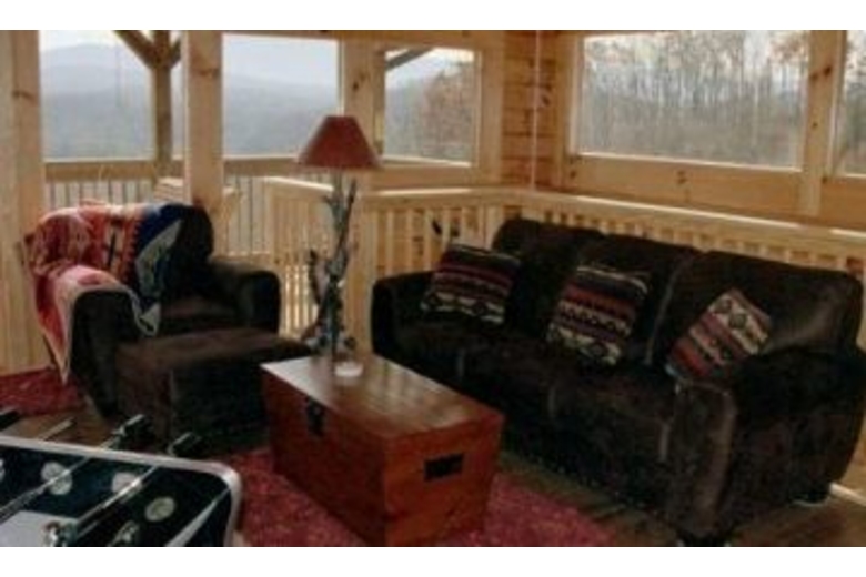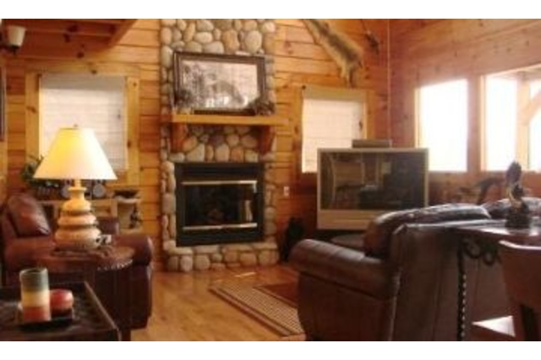 As you enter the main level you will find a fully-equipped kitchen, dining area, living room with a beautiful rock stone gas-log fireplace, big screen TV/DVD, and stereo/CD player with sleeper sofa. This level also has a master bedroom with a king-size bed and full bath. The stairway that leads up to the loft has a king-size bed, den area with sleeper sofa. Pamper yourself in the two-person Jacuzzi with full bath. This level you can also step out onto the deck to relax and enjoy the six-person Hot Tub while you take in the spectacular views. If you take the stairway down from the main level, you will enter the game room. This room offers a pool table, air hockey, foosball, video arcade game that includes 39 games...Pac-Man, Ms Pac-Man, Galaga, Frogger, Donkey Kong, and Pinball to name a few. Also, there are basketball hoops and a large comfy chair that folds out to a twin bed. This level also includes a third bedroom with a king size bed with full bath. All bedrooms and game room include TV/DVD.Surrounding Description