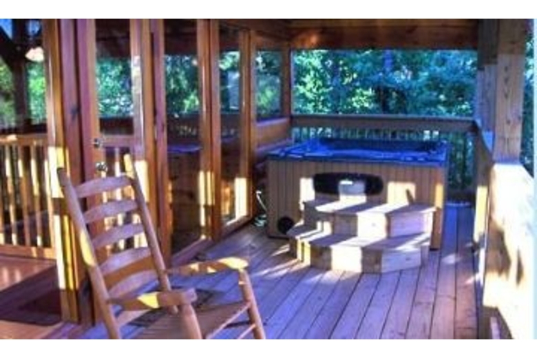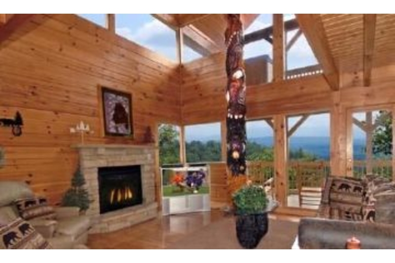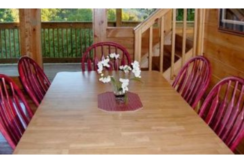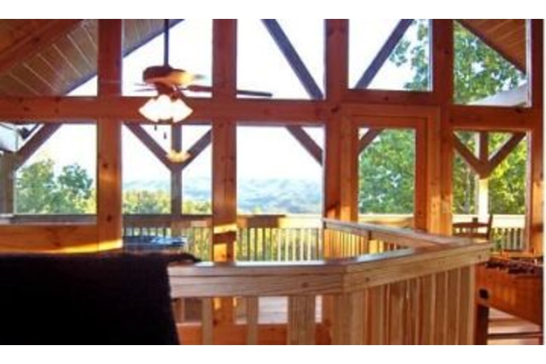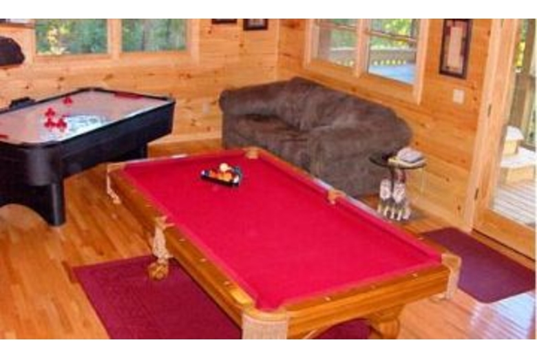 On the main level is the full-sized, fully equipped kitchen, dining and living areas, washer and dryer, a master bedroom with a king bed, TV with DVD, and a full bath with stand up shower. The upper level has a king bedroom with TV and DVD, full bath with Jacuzzi and stand up shower, futon and foosball table. The lowest level has two king bedrooms each with TV's and DVD player, a full bath with a shower tub. The game room in the basement has a pool table, CD/Stereo player and sleeper sofa. This cabin offers 2 hot tubs!!Surrounding Description