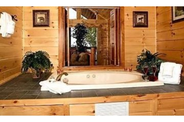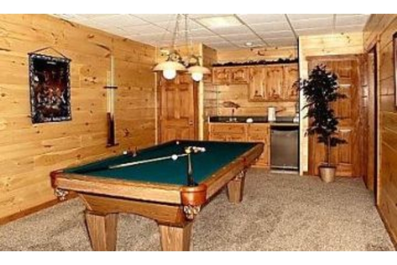 Bear Heaven is loaded with amenities. For your entertainment there are two 55" Wide Screen Televisions, four additional TVs throughout the cabin, six VCRs, a Stereo System with Surround Sound, a PlayStation II with two games, a Game Table, Pool Table, Air Hockey, Swimming Pool access and Children's Playground. During your stay you will also find a Fireplace, Gourmet Kitchen, Jacuzzi, Hot Tub, Rockers on the Deck and Washer/Dryer.Surrounding Description
