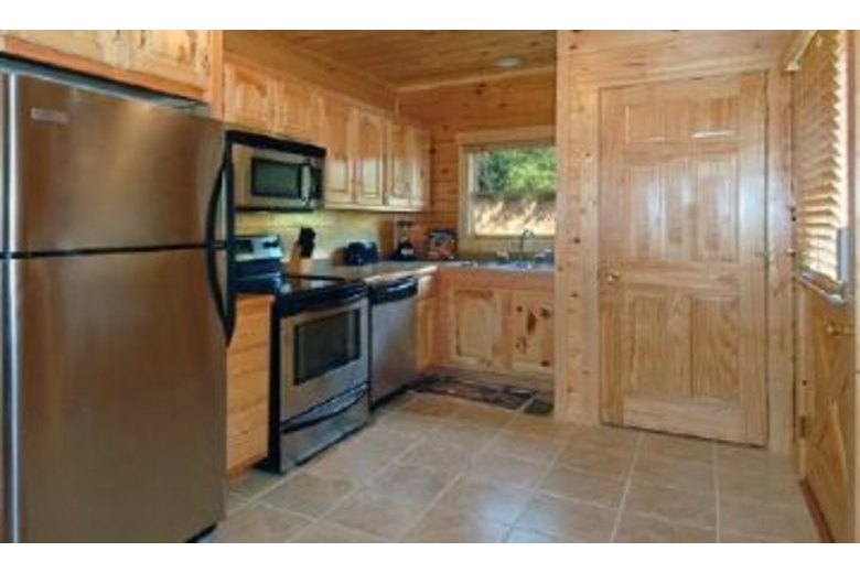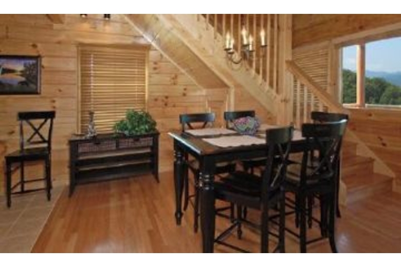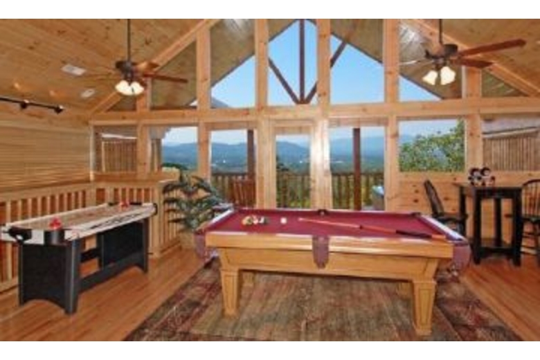 This 1 bedroom, 2 bath log home is loaded with entertainment options: big screen TV in the living room, a TV in the game room and bedroom, DVD players, pool table, air hockey, video gaming systems, a computer with high-speed internet, and Cable TV. Additional conveniences included are a washer/dryer, fully-equipped kitchen with stainless steel appliances, 1 king size bed, 1 queen size bed, 1 queen sleeper sofa, and a Jacuzzi tub. From one of the decks enjoy the magnificent view, hot tub, and rockers.Surrounding Description