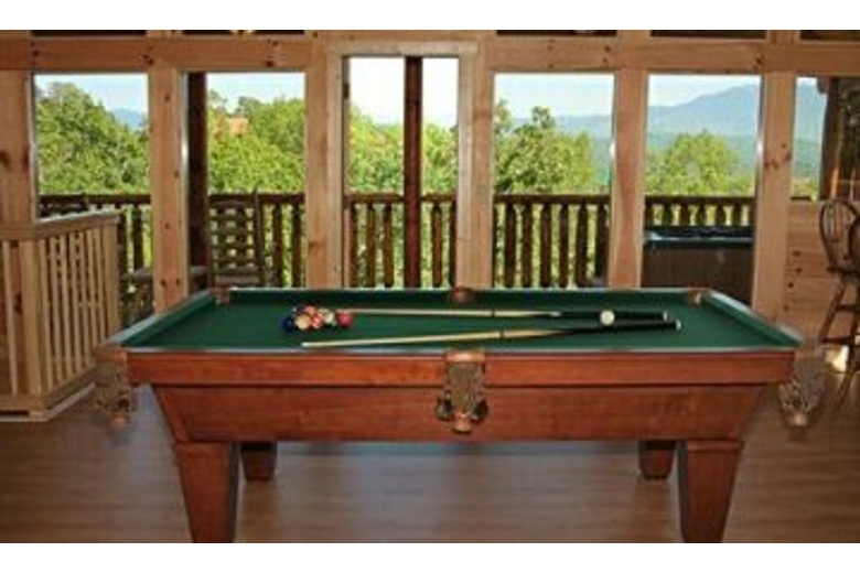The fantastic 1 bedroom, 2 bath and loft, cabin is ideal to relax and enjoy the spectacular mountaintop views from the multitude of glass walls or to re-energize between the numerous activities available nearby. On the main floor of this luxury cabin is a gourmet kitchen, living room with plasma TV, dining room and master bedroom. Downstairs from the main floor is the den with a large screen TV with X-box, and a queen sofa sleeper. Upstairs from the main floor is the game room that includes a pool table, air hockey table, arcade game, pub table, 2 queen sofa sleepers, and a TV with the NFL Sunday Ticket. Relax in the hot tub located on the deck off the game room on the upper level and enjoy the spectacular mountain views and the beautiful starry nights.Surrounding Description