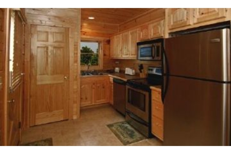 "Victoria's Secret" is a 1 bedroom, 2 bath resort cabin. Relax in the comfort of the luxurious living room and enjoy the large screen TV, mountain view and beautiful stone fireplace. The gourmet kitchen offers you all upgraded stainless steel appliances and complete amenities. The master suite features king size bed, and hot tub on the upper deck with fantastic mountain views. The upper level offers you a queen bed, stone fireplace, and HDTV with surround sound to enjoy. The game room is equipped with a pool table, air hockey table, surround sound, TV and Video Arcade. Work or play the desktop computer with High-Speed internet, Wi-Fi access and a Business Center (fax/printer/copier).Surrounding Description