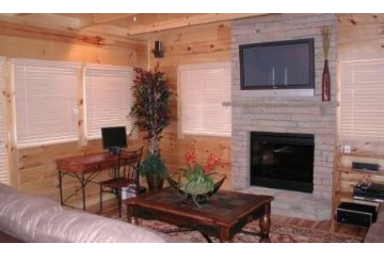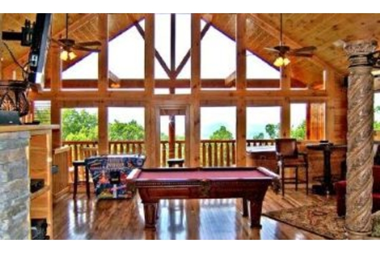 This 2 bedroom, 2 bath cabin's cozy atmosphere will encourage you to nestle in the reclining love seat and enjoy the mountain view as you are entertained by the Hi-Definition wide screen plasma TV complete with DVD and surround sound. If you feel more energetic, you can play in the game room with the wide array of toys, pool table, air hockey, 27" display video arcade, a second Hi-Definition wide screen plasma TV with surround sound and DVD. Not Tired yet? Relax in the hot tub and listen to the surround sound on the porch before retiring to your king-size bed. Each room comes with a flat screen LCD TV. The kitchen is fully equipped and an outdoor grill is provided. A computer equipped with Hi-Speed internet is available.Surrounding Description