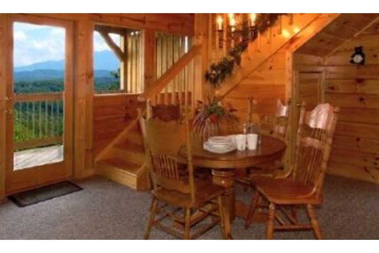 This beautiful log cabin is a two-story, 2 bedroom, 2 full bath cabin that accomodates up to six guests. It also has a loft game room that features a pool table, foosball, air hockey and PlayStation II console. Step into this cozy cabin to relax next to one of the 2 fireplaces or enjoy the game room while taking in the spectacular views of the mountains . You will feel refreshed in the 2 person Jacuzzi or step out onto the upper deck and enjoy the spectacular views of the Great Smoky Mountains and Mt Leconte from the Hot Tub. Watch your favorite sports team or show on the 51'' big screen TV.Surrounding Description