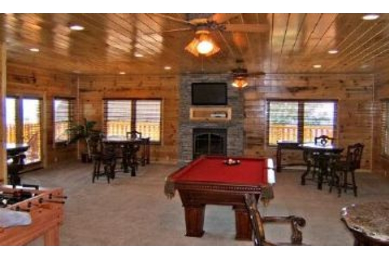 This amazing cabin accommodates up to 30 guests and features an awesome panoramic view. As the tallest structure on the resort, it towers over the resort offering some of the most breathtaking and stunning views available. This cabin provides spacious and luxurious accommodations for your next family reunion, corporate retreat, church retreat or other large gathering. Only minutes from Dollywood, and 15 minutes away from Gatlinburg. Enjoy the best of both worlds...A perfect place to relax and getaway, but close to all the action and adventure the Great Smoky Mountains has to offer!Surrounding Description