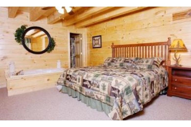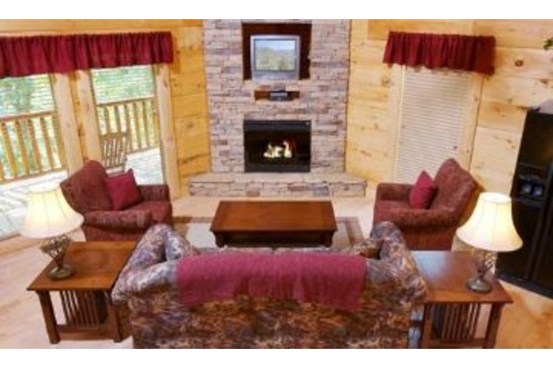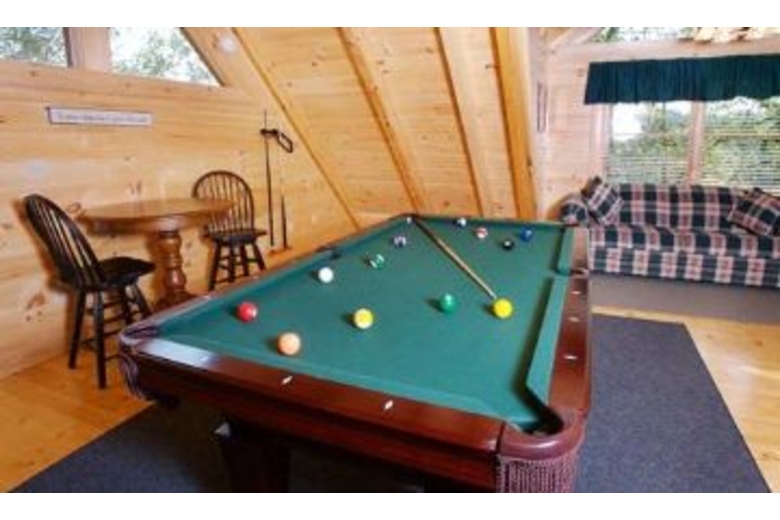 This luxurious cabin is the perfect setting for Honeymooners, Anniversary celebrations, or any couple's getaway. There is a king bed in the bedroom, as well as a fireplace and bedside jacuzzi. The loft area has a pool table and a queen sleeper sofa. On the deck, there is a hot tub and country porch rockers.Surrounding Description