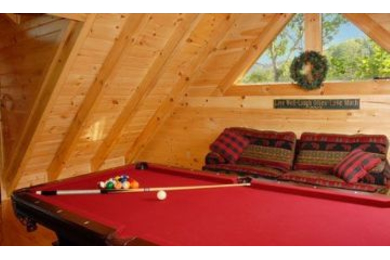 This luxurious cabin is the perfect setting for Honeymooners, Anniversary celebrations, or any couple's getaway. The master bedroom offers a king size bed, nice fireplace and a jacuzzi. The living area has comfortable furnishings and a wonderful stone fireplace. There is a loft with a pool table and queen sofa sleeper.Surrounding Description