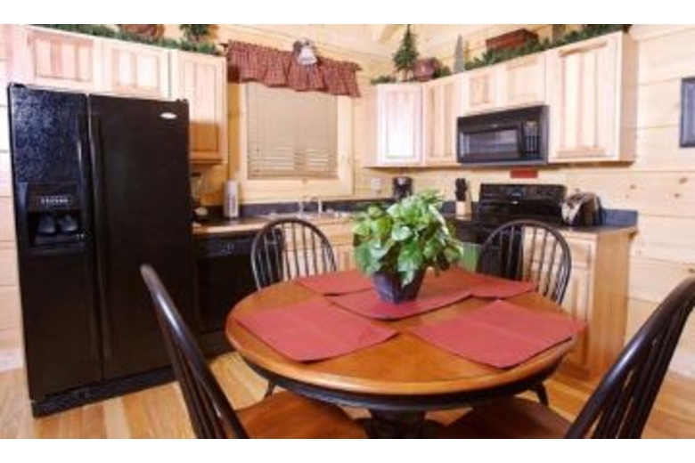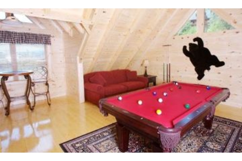 This log home has two levels of living for your vacation enjoyment. There is a king bed in the master suite, as well as a fireplace and bedside jacuzzi. The loft has a sofa sleeper and a pool table. There is a stacked stone fireplace in the great room, and the kitchen is fully equipped.Surrounding Description