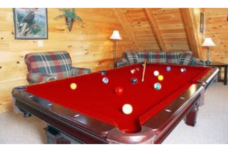 Nurture yourself with amenities such as the hot tub, fireplace, pool table or bedside Jacuzzi. There is a king bed in both the master bedroom and the second bedroom. The loft has a pool table, air hockey table, and a foosball table. In the great room there is a stone fireplace. Out on the deck is a hot tub and country porch rockers.Surrounding Description
