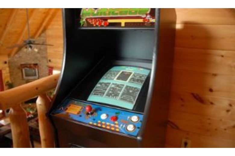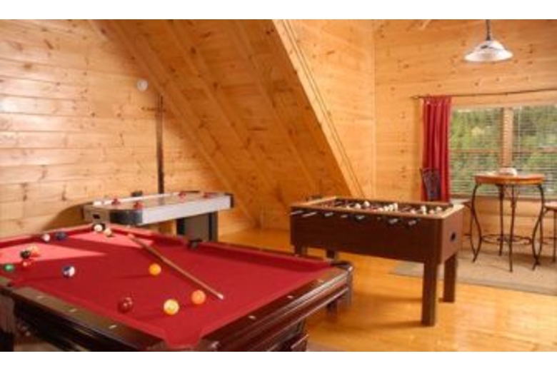 Try the 48-game arcade, or make the rounds of the air hockey, foosball and pool tables. Four TVs and a CD stereo round out the fun. For serious relaxing, you can laze in front of the fireplace. Or laze in the jetted Jacuzzi tub. Or you can move your lounging project out to the deck where you'll find rocking chairs, a porch swing and hot tub.Surrounding Description