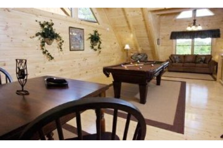 Nurture yourself with amenities such as the hot tub, fireplace, pool table or bedside Jacuzzi. There is a fully equipped kitchen, two king beds, two queen sofa sleepers, a private deck with bbq and country porch rockers, and wonderful mountain views.Surrounding Description