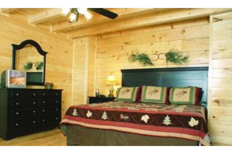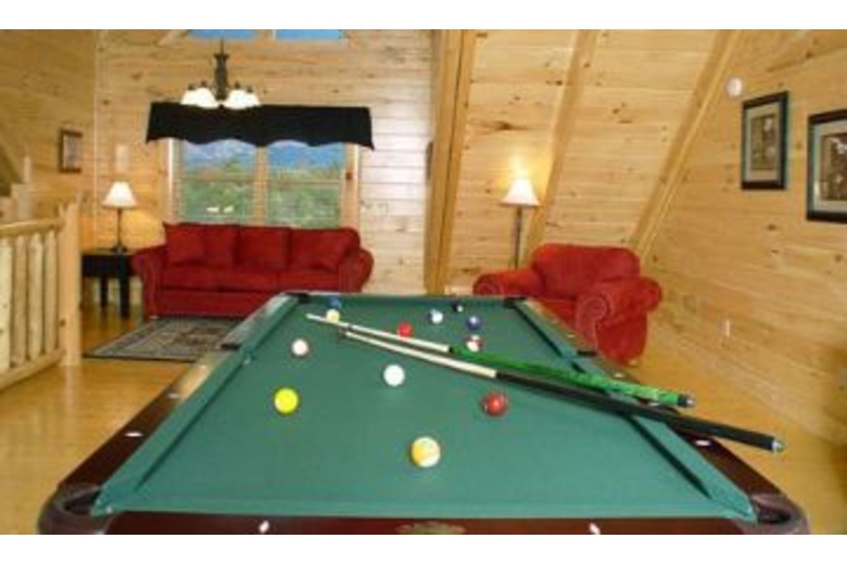 This wonderful log home has two bedrooms, each with a king size bed. The master bedroom also has a great bedside jacuzzi. There is a stone fireplace in the great room, and the kitchen is fully equipped. Upstairs in the loft you will find a pool table and a queen sofa sleeper. There is a private hot tub on the deck, as well as some country porch rockers.Surrounding Description