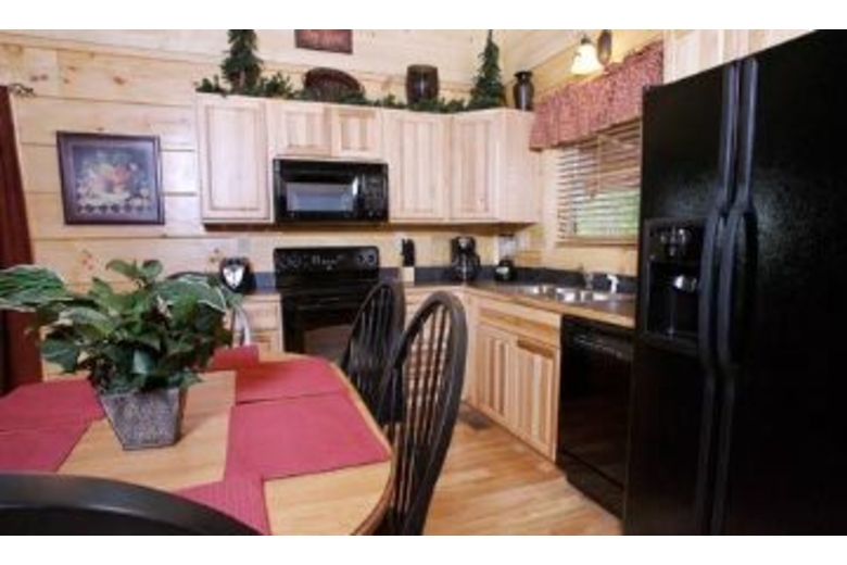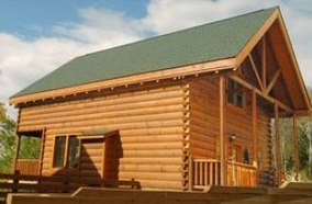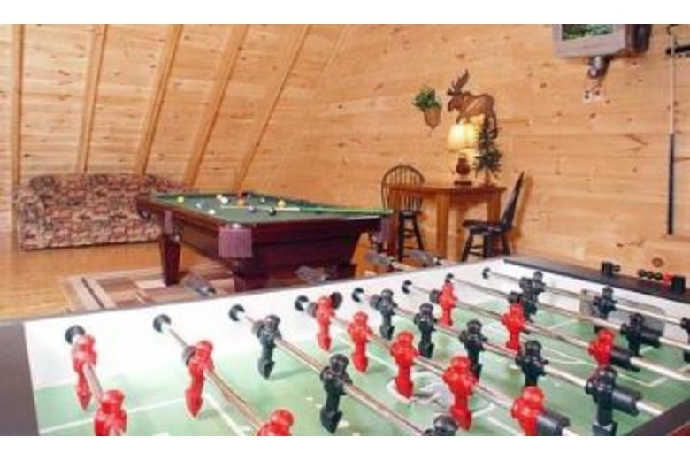 This wonderful log home has two bedrooms, each with a king size bed. The master bedroom also has a great bedside jacuzzi. There is a stone fireplace in the great room, and the kitchen is fully equipped. Upstairs in the loft you will find a pool table, foosball and a queen sofa sleeper. There is a private hot tub on the deck, as well as some country porch rockers.Surrounding Description