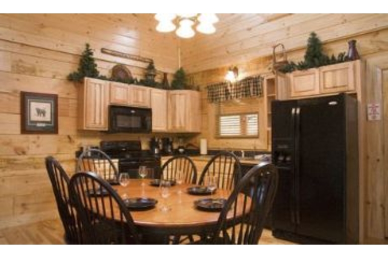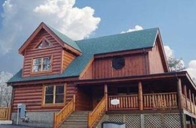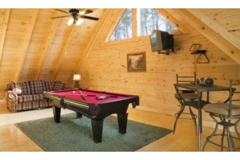 This wonderful log home has two bedrooms, each with a king size bed. The master bedroom also has a great bedside jacuzzi. There is a stone fireplace in the great room, and the kitchen is fully equipped. Upstairs in the loft you will find a pool table and a queen sleeper sofa. There is a private hot tub on the deck, as well as some country porch rockers.Surrounding Description