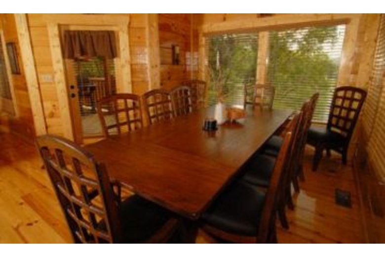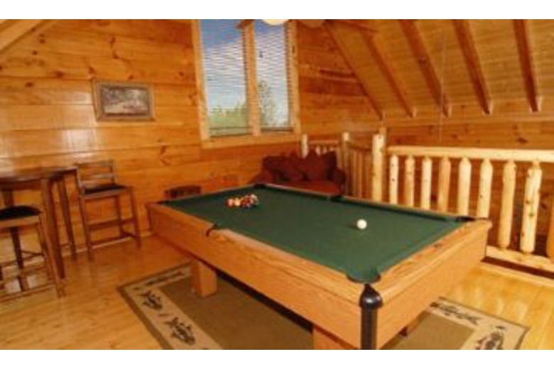 With three master bedrooms, this log home is perfect for couples travelling together. Two bedrooms feature bedside Jacuzzi tubs, while the third boasts its own fireplace. Everyone has their own private retreat. The common areas provide ample space for everyone to gather, whether it is the great room with its feel-good furnishings, the loft with pool table and TV, or the homey kitchen and dining table that seats 10.Surrounding Description