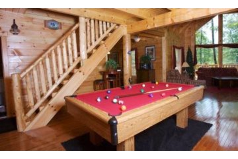 Nestled in the woods, this fabulous log home has it all. Even your kids will approve of the video games made available to them. There is a private screened in porch where you can soak up the bubbles in your very own hot tub. Shoot a game of pool while you rock to the rhythms of your stereo system. The BBQ is ready for your most succulent steak, or maybe a spare rib or two is just what you need. No matter how you choose to spend your time, we are sure you will find this one "Smokin."Surrounding Description